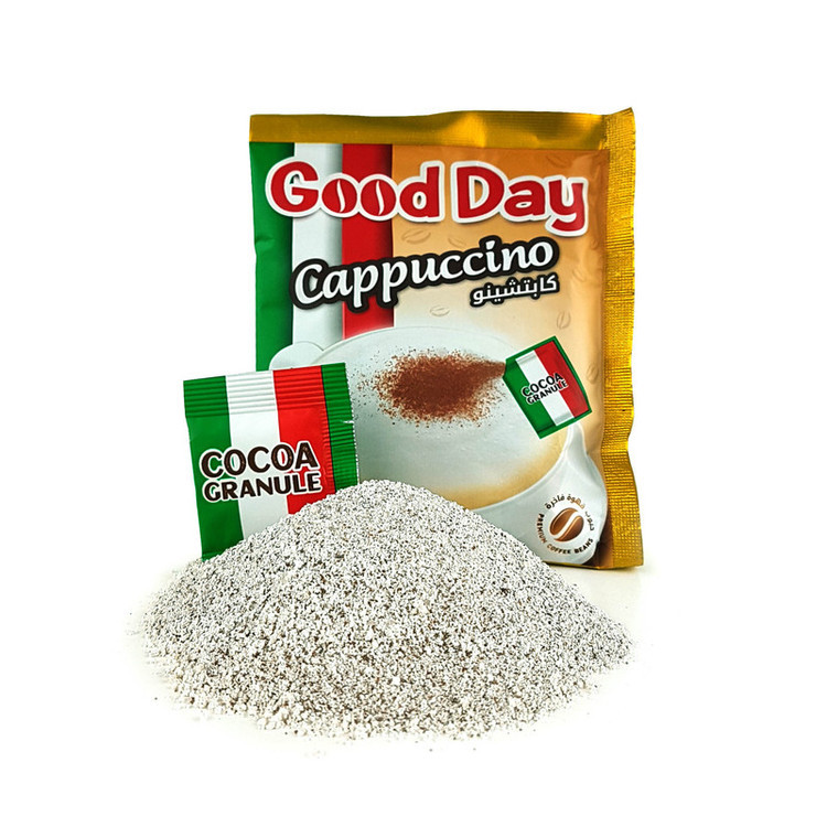 کاپوچینو فوری گود دی همراه با پودر شکلات، کف بسیار جذابی تشکیل میدهد و یکی از بهترین و با کیفیت ترین نوشیدنی های محبوب است که طعمی بی نظیر و خوشمزه دارد و آماده سازی آن بسیار آسان و سریع است.مطالعات نشان میدهد که کافئین موجود در کاپوچینو باعث افزایش کارکرد مغز شده و خطر ابتلا به آلزایمر را کاهش میدهد.کاپوچینو سطح کلسترول خون را کاهش داده و از ابتلا به بیماری های قلبی جلوگیری میکند.