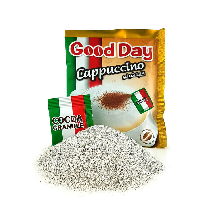 کاپوچینو فوری گود دی همراه با پودر شکلات، کف بسیار جذابی تشکیل میدهد و یکی از بهترین و با کیفیت ترین نوشیدنی های محبوب است که طعمی بی نظیر و خوشمزه دارد و آماده سازی آن بسیار آسان و سریع است.مطالعات نشان میدهد که کافئین موجود در کاپوچینو باعث افزایش کارکرد مغز شده و خطر ابتلا به آلزایمر را کاهش میدهد.کاپوچینو سطح کلسترول خون را کاهش داده و از ابتلا به بیماری های قلبی جلوگیری میکند.